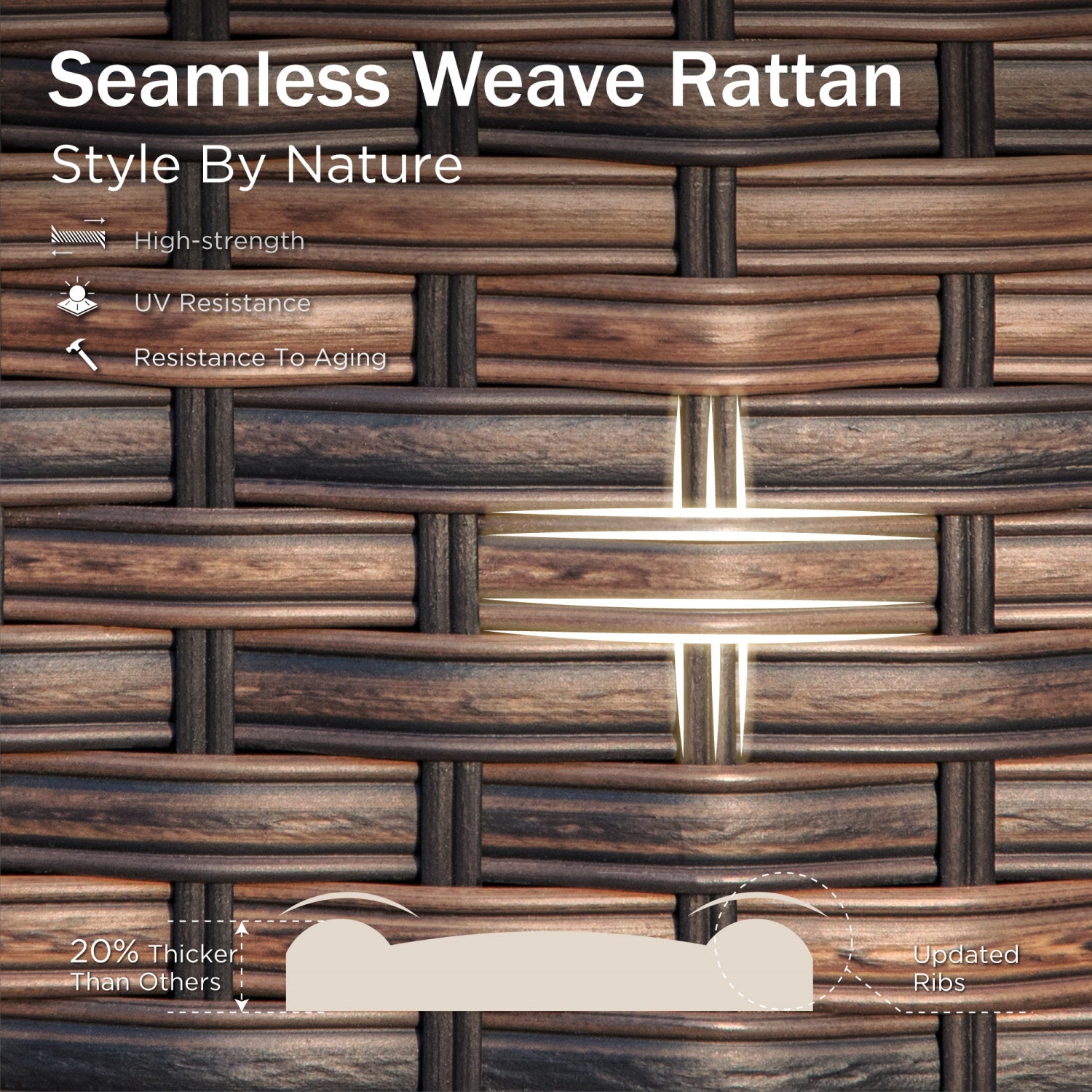 - Enhanced Comfort and Durability: Thick 4.7-inch cushions provide superior comfort, while the double-sided full rattan backrest enhances aesthetics and durability, making this a stylish and lasting outdoor piece.