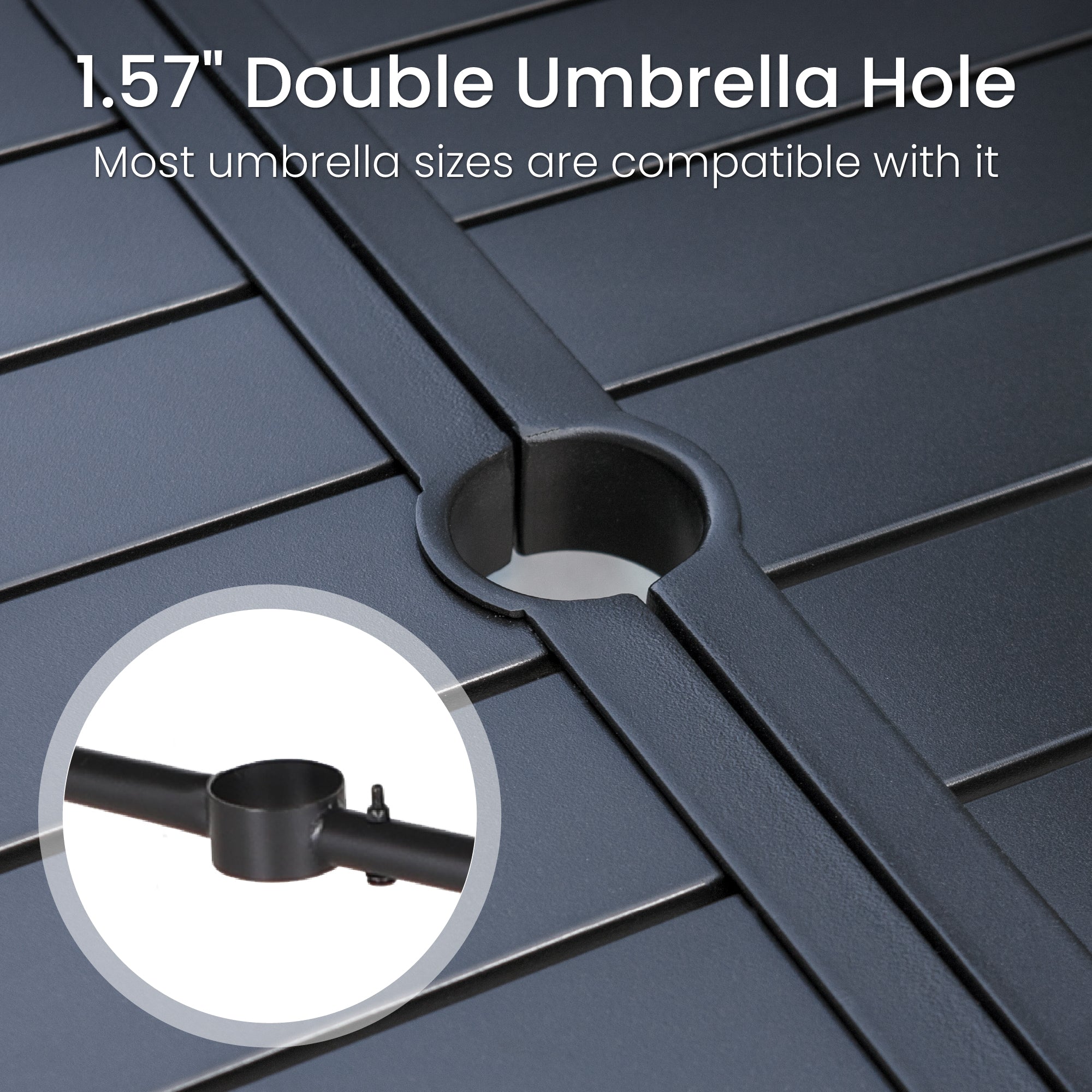 Table: 67" L x 38" W x 29" H, umbrella hole: 1.57"