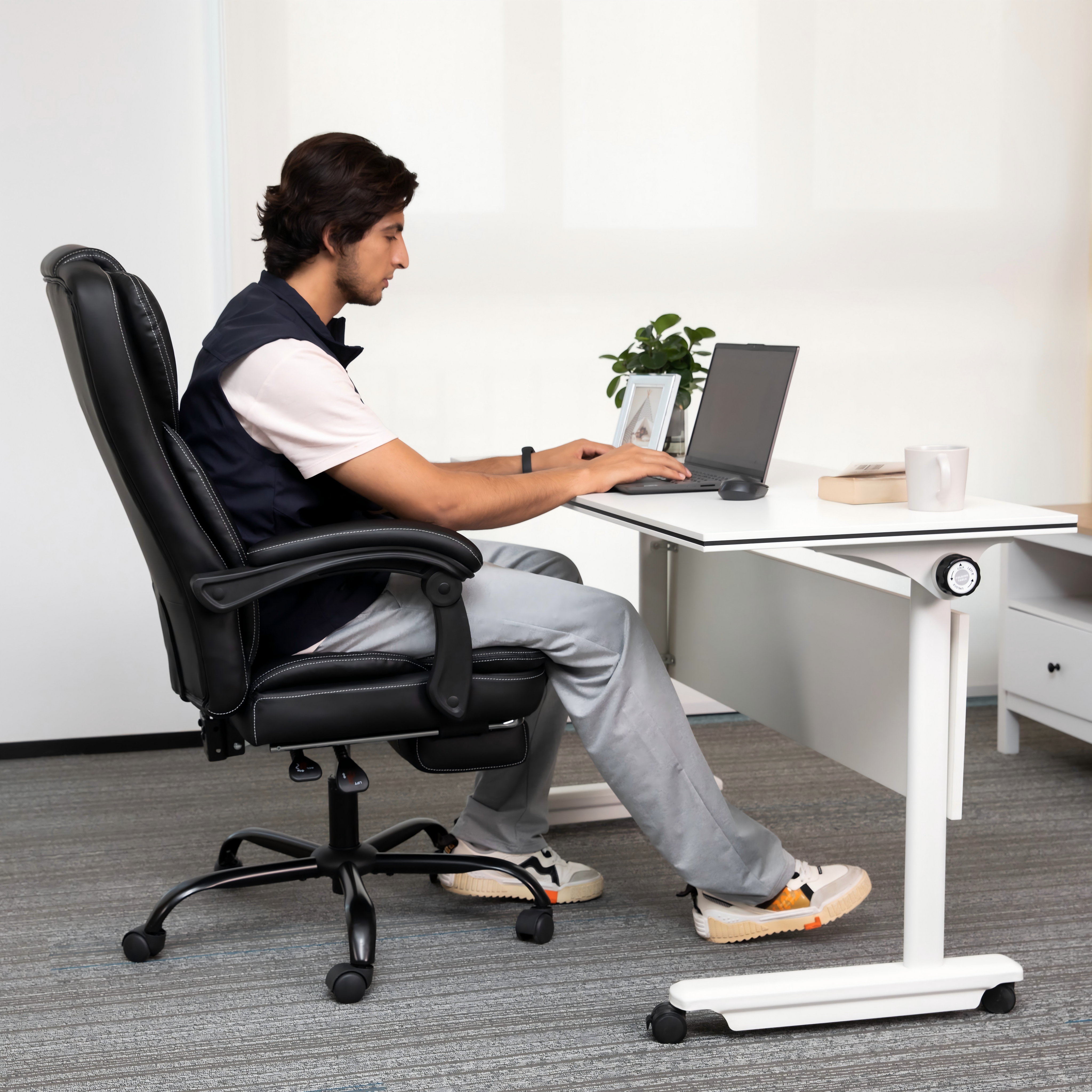 - Premium PU Leather: Soft, breathable, and wear-resistant. Easy to clean and comfortable for extended sitting.