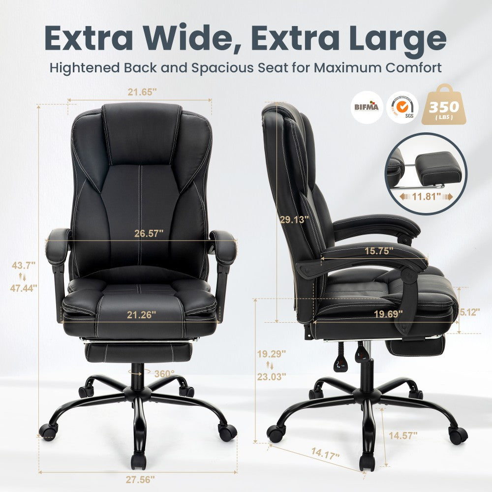 - Spacious & Durable: Extra-wide seat and high back with 350 lbs weight capacity, SGS-certified gas lift, BIFMA compliance, 360° rotation, and smooth nylon casters for seamless mobility.
