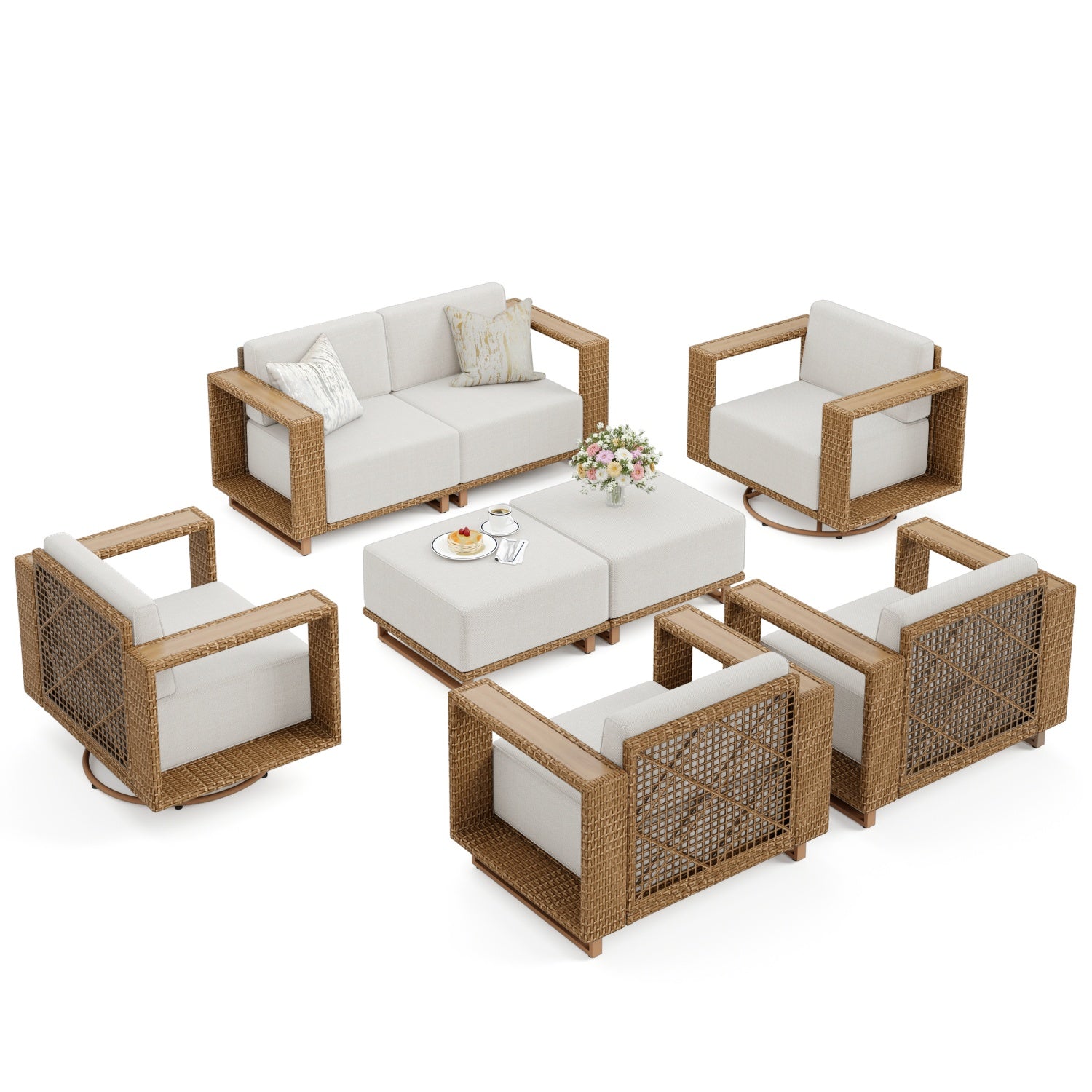 Luxury Patio Wicker King Swivel Sofa Set with Wood Table