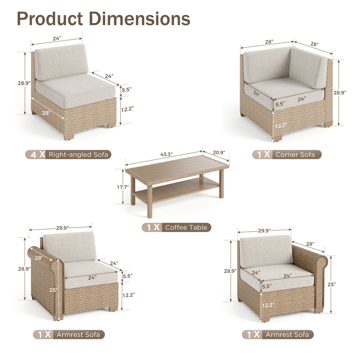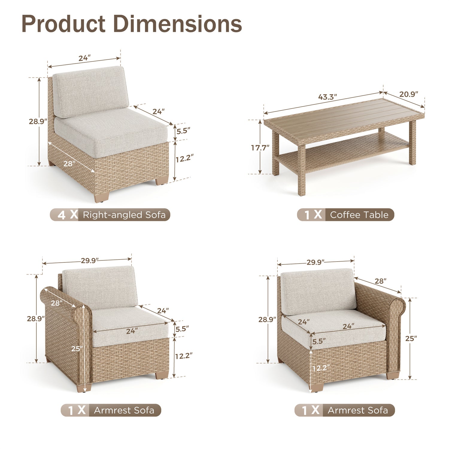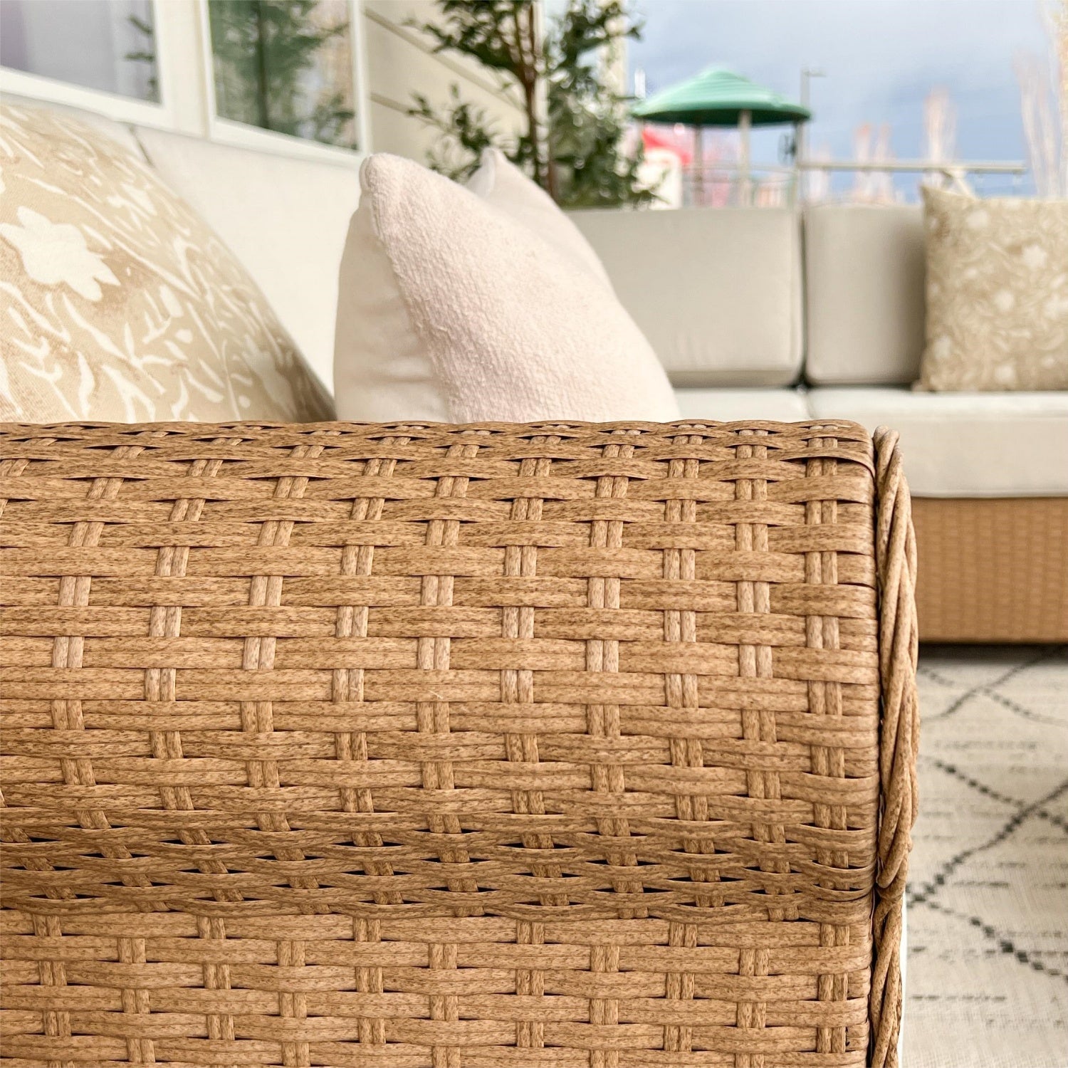 - Double-Shelving Wicker Table: The outdoor sofa features a double-shelving wicker table, providing generous storage space and a sturdy surface, perfectly blending style and durability for outdoor settings.