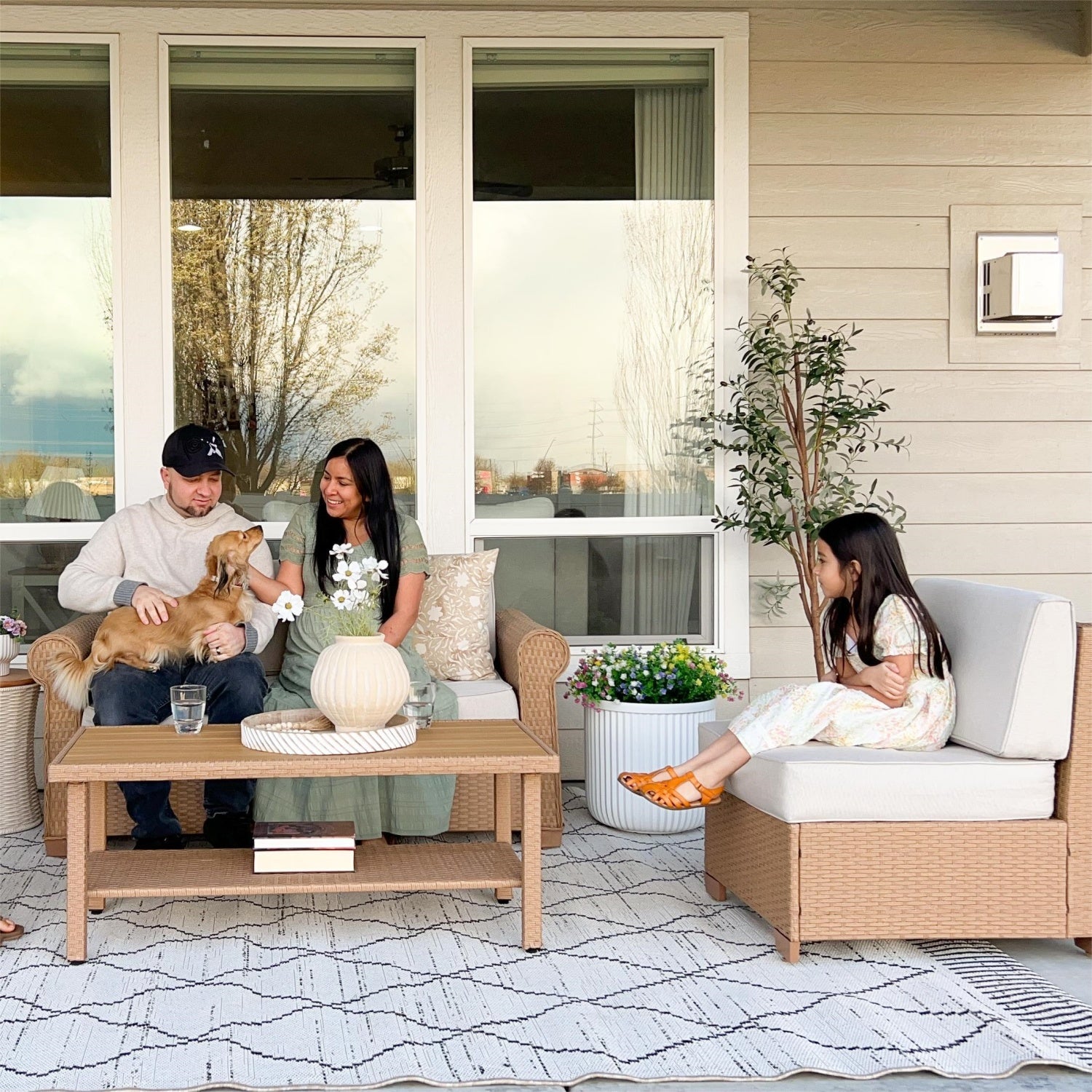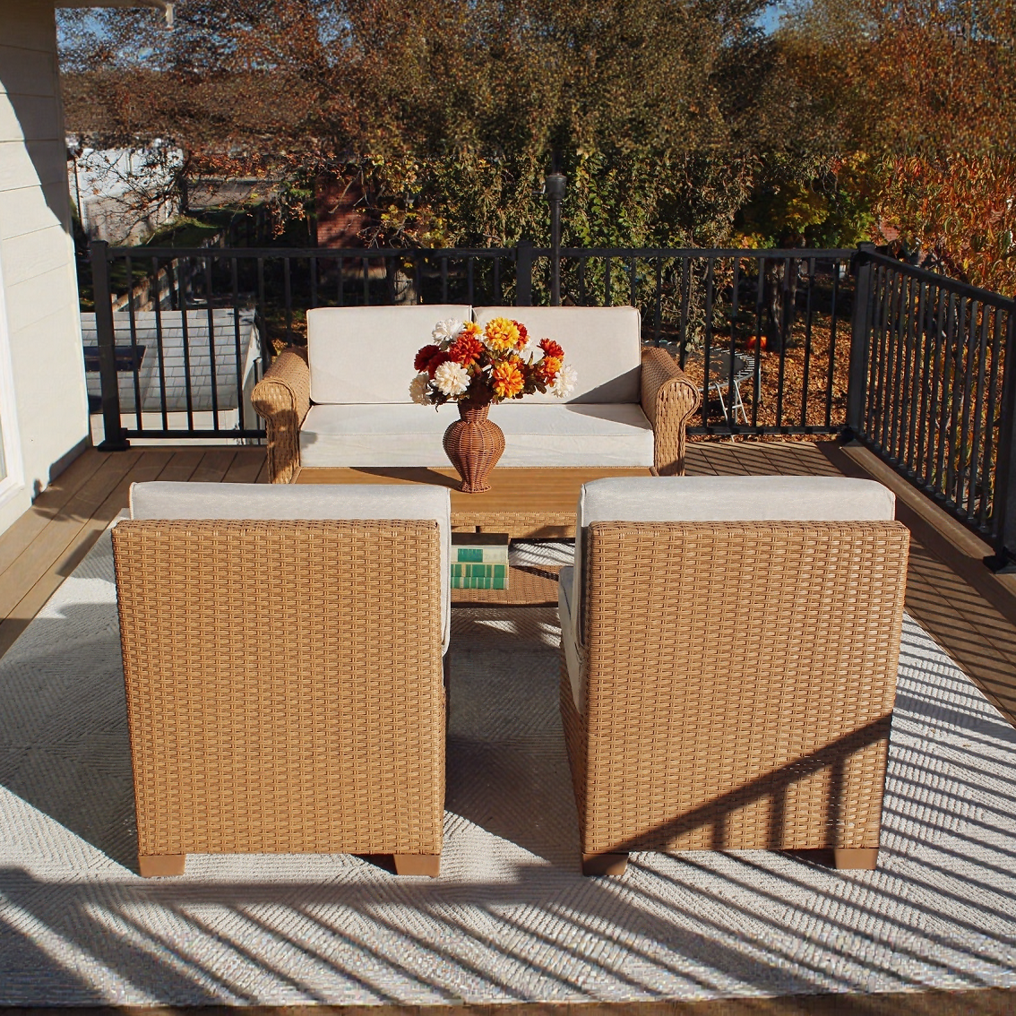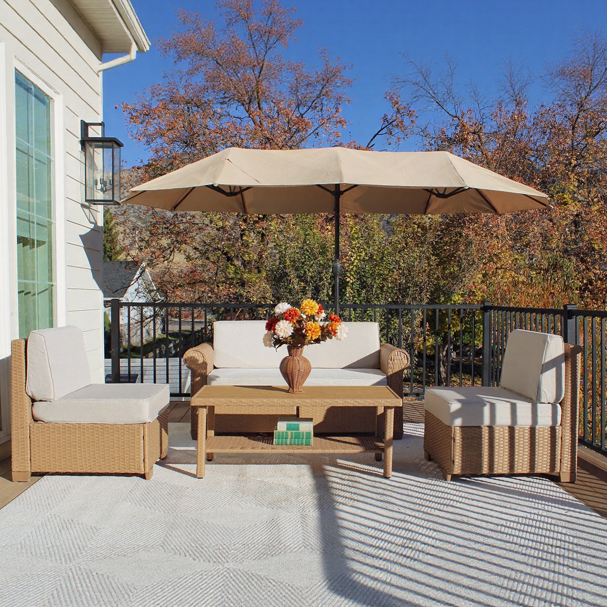 - Double-Shelving Wicker Table: The outdoor sofa features a double-shelving wicker table, providing generous storage space and a sturdy surface, perfectly blending style and durability for outdoor settings.
