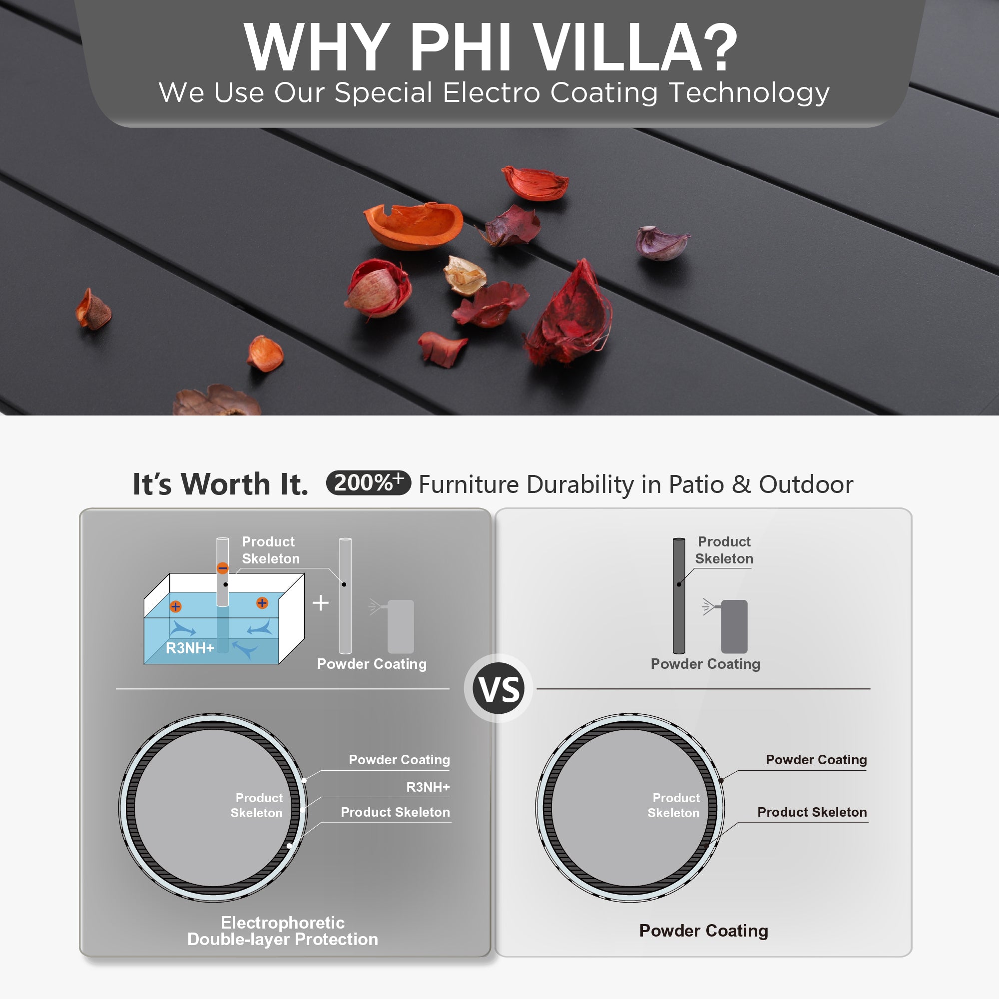Phi Villa 37" Metal Square Slat Patio Dining Table with Umbrella Hole