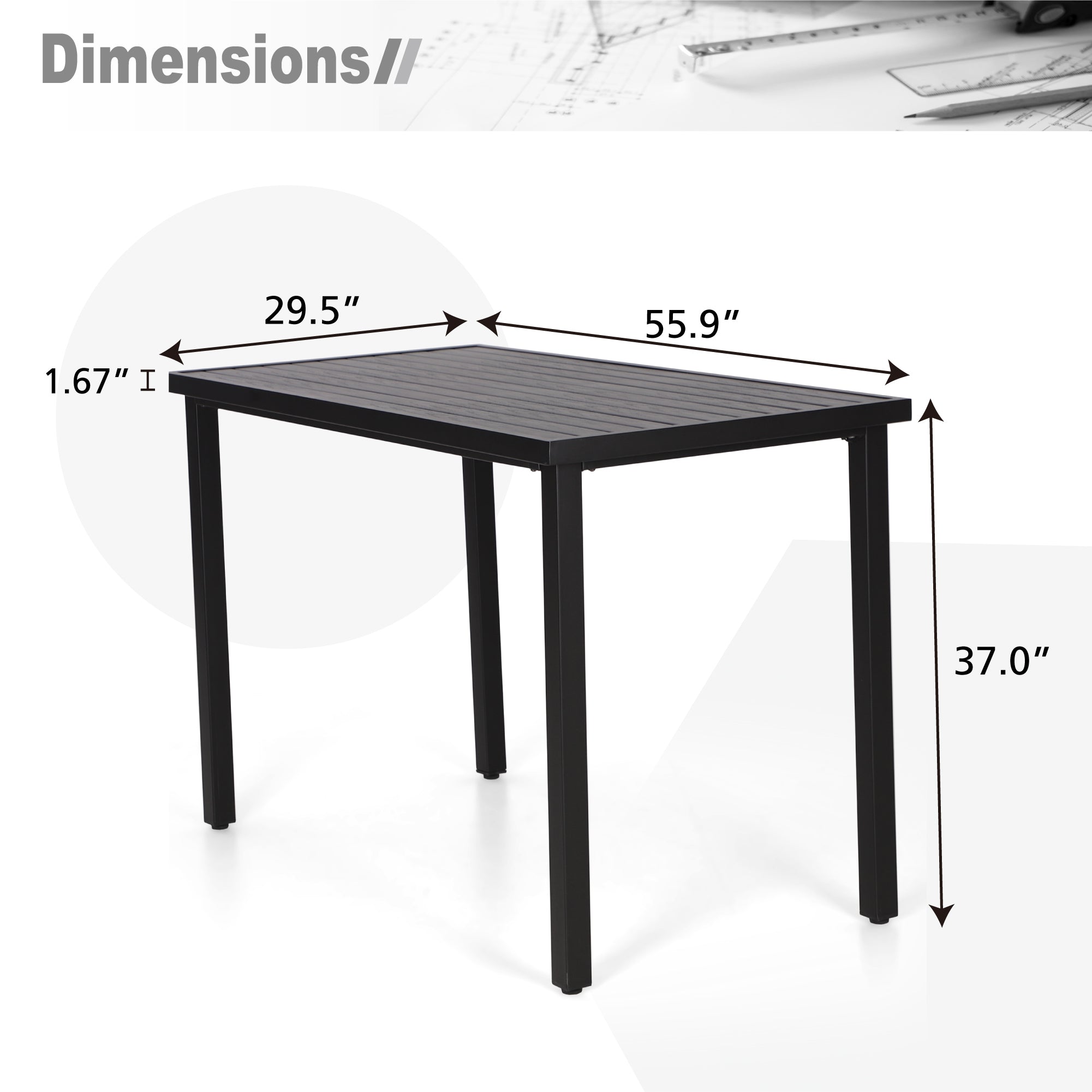 - Modern Design: Tall rectangle table with metal frame and wood-like top. It’s perfect for a pub/bar table, a counter or a dining table. While the design is simple, the bar bistro table is sturdy and durable, and goes well with many styles, no matter if you are a minimalist or otherwise.