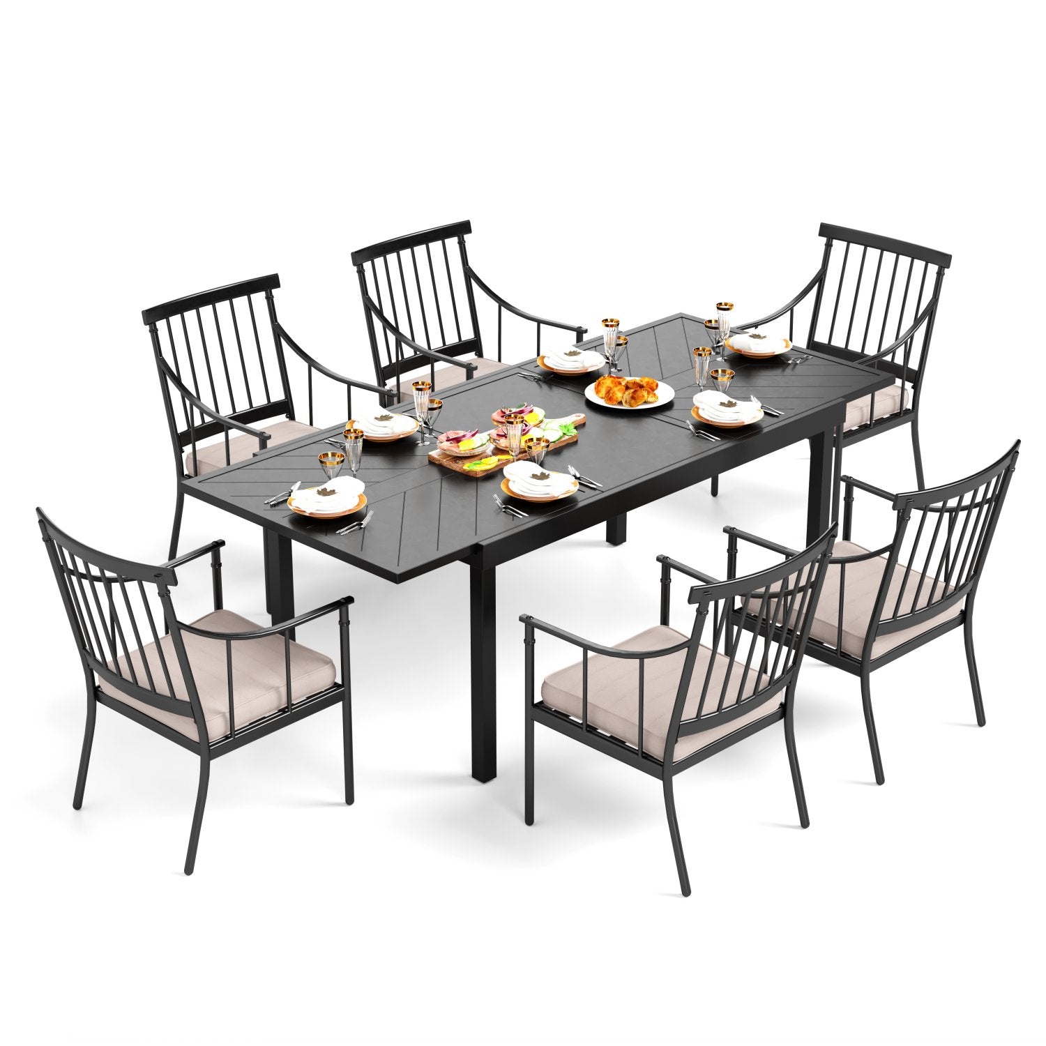 Modern 7-Piece Patio Dining Set with Upgraded Padded Swivel Chairs for Backyard PHI VILLA