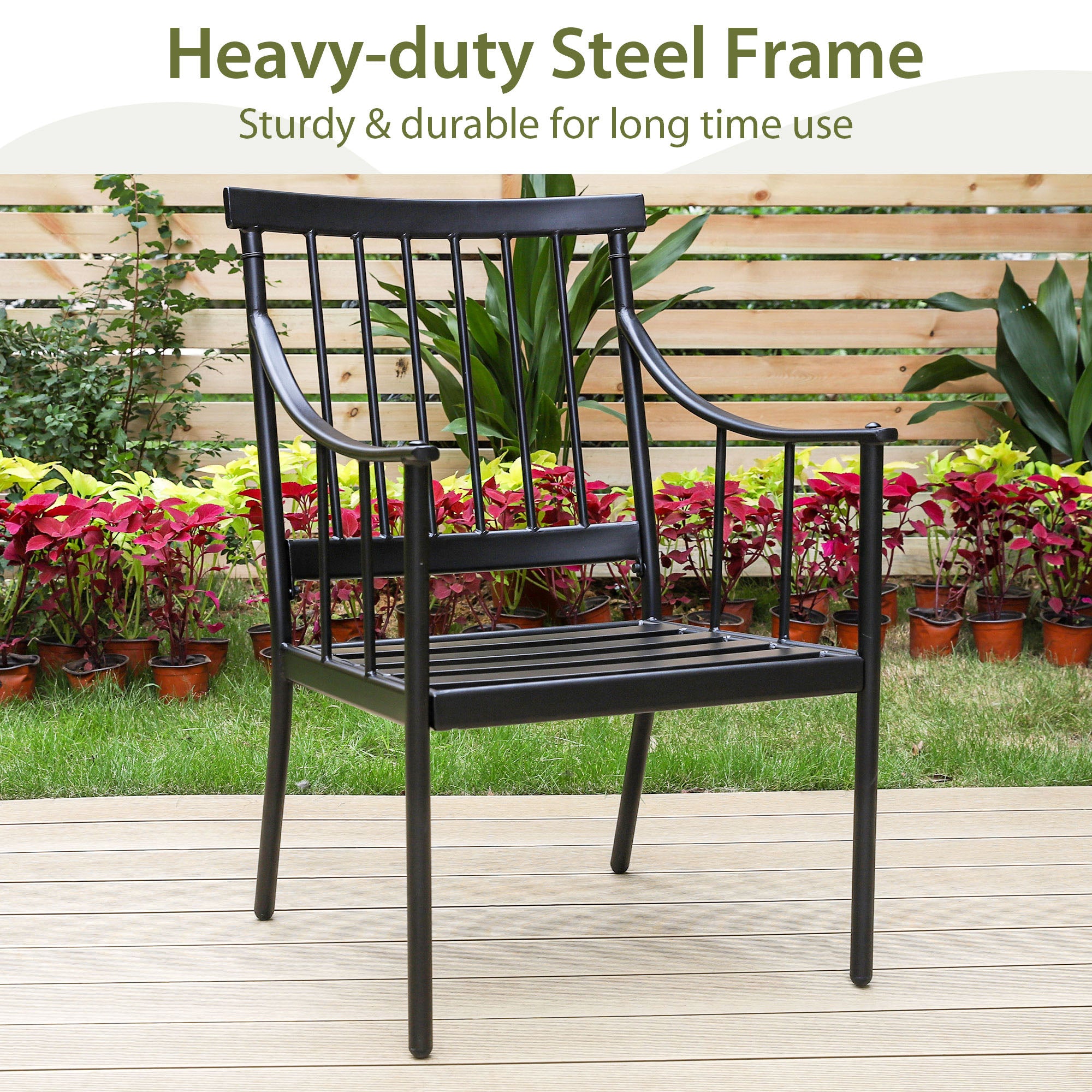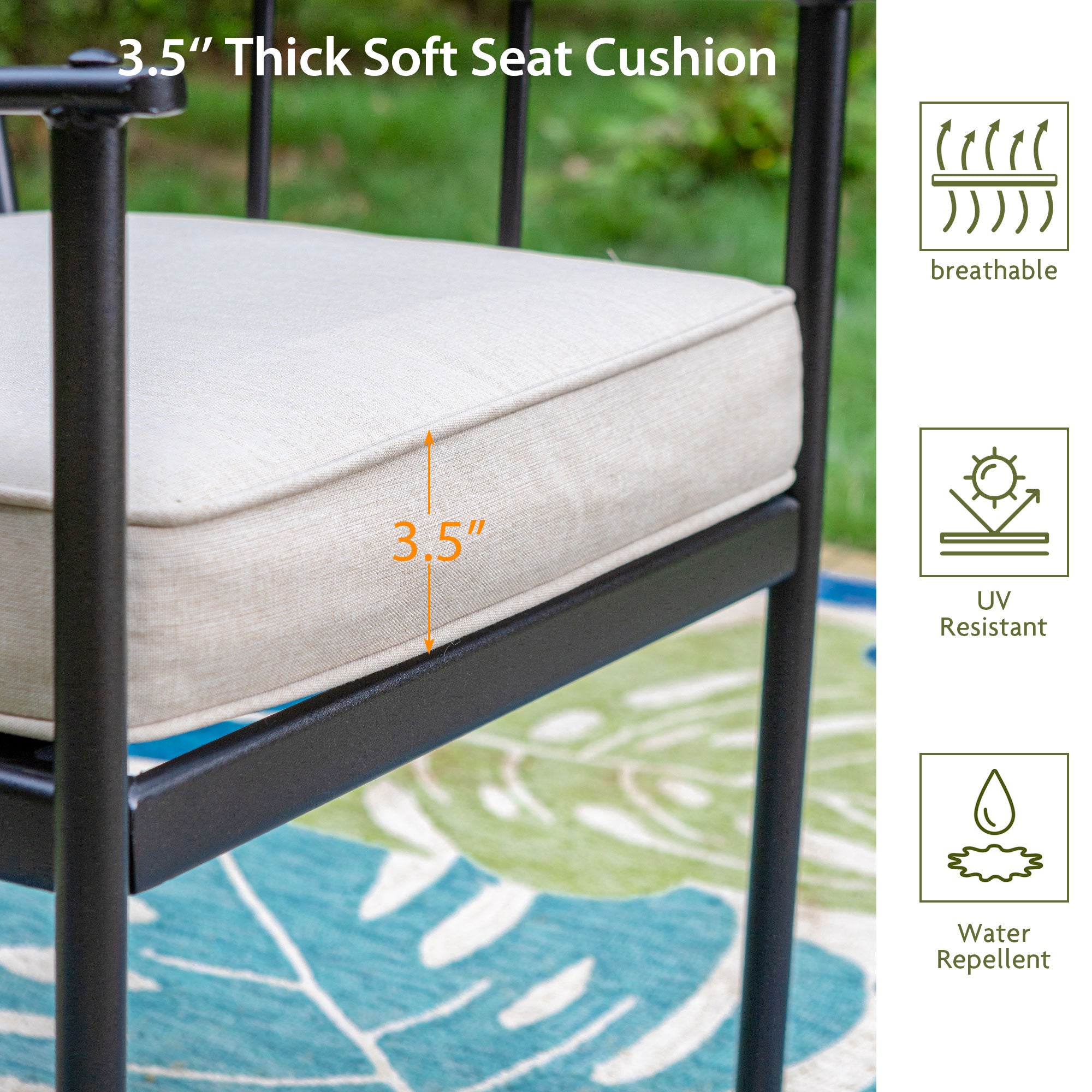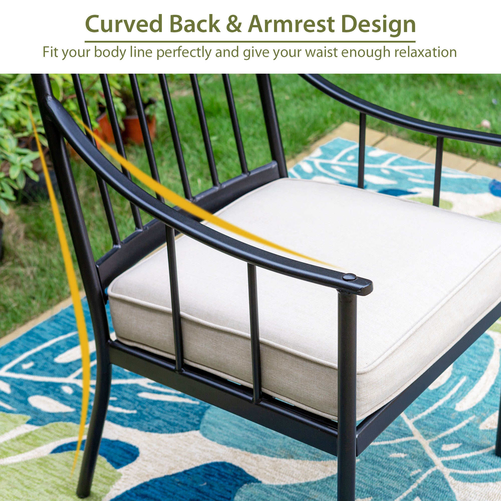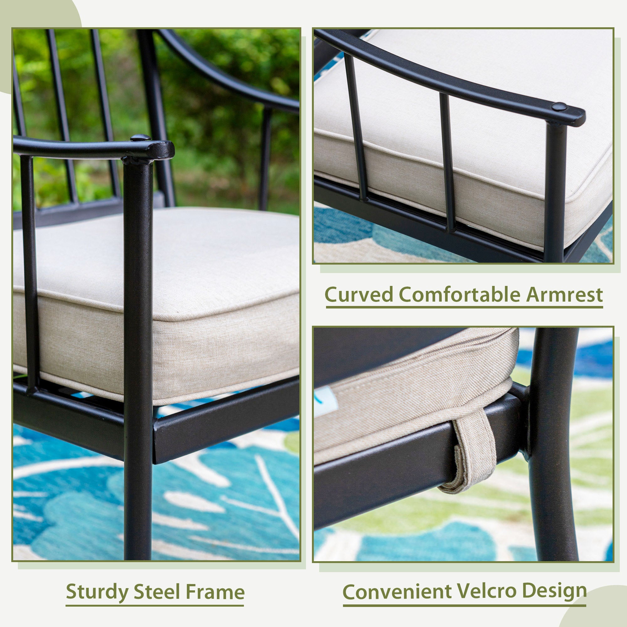 - Professional Material: This outdoor furniture set features a strong, heavy-duty wrought steel frame with a black matte e-coating for a smooth, rust-resistant finish suitable for all seasons.