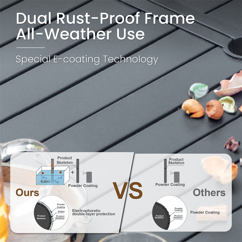 - Table E: 67"L x 37"W x 30"H, umbrella hole: 1.97''