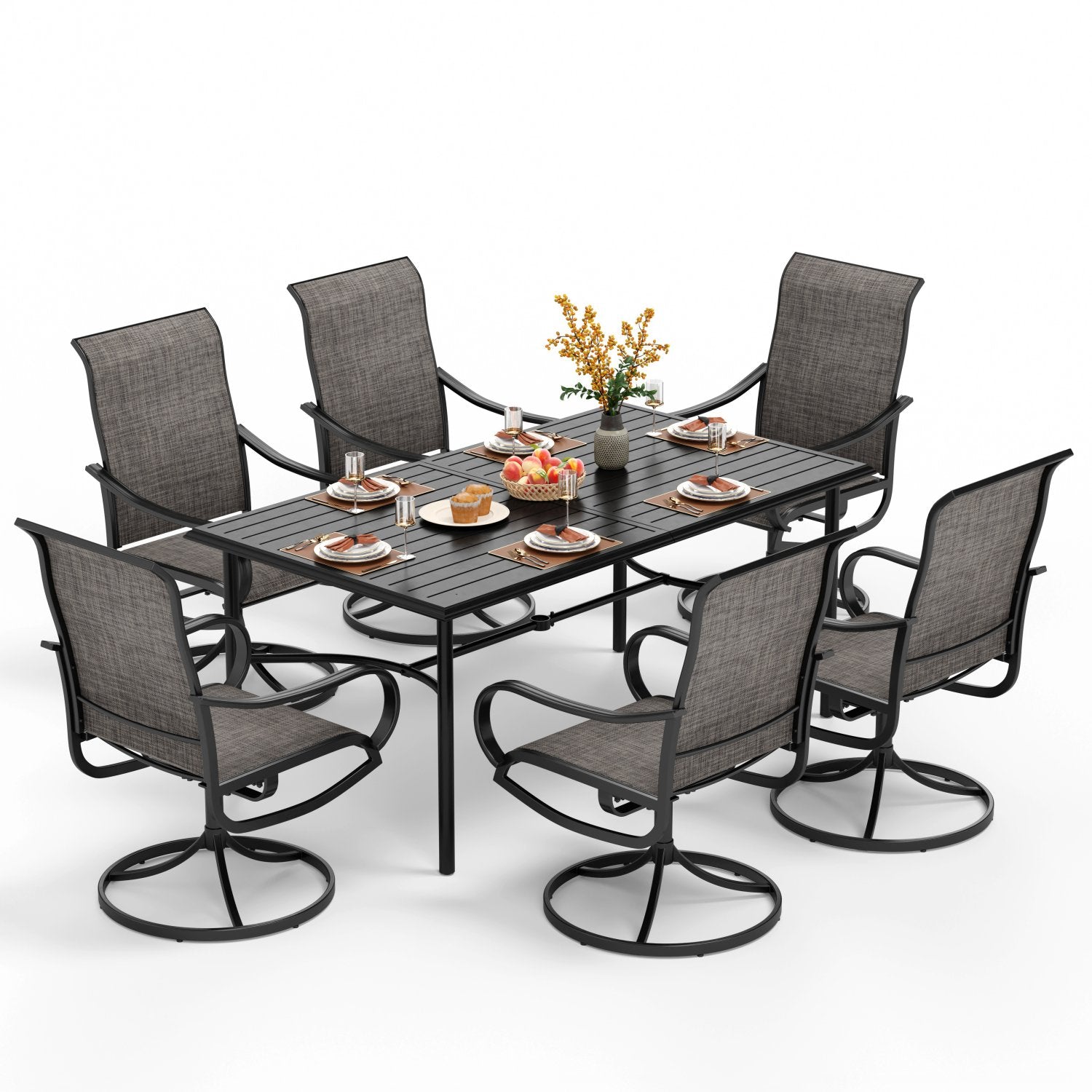 - 7-Piece Patio Dining Set Textilene Swivel Chairs & Enlarged Table