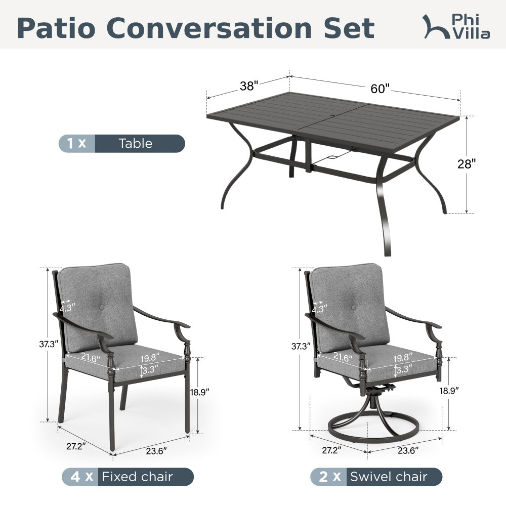 Modern 7-Piece Patio Dining Set with Upgraded Padded Swivel Chairs for Backyard PHI VILLA