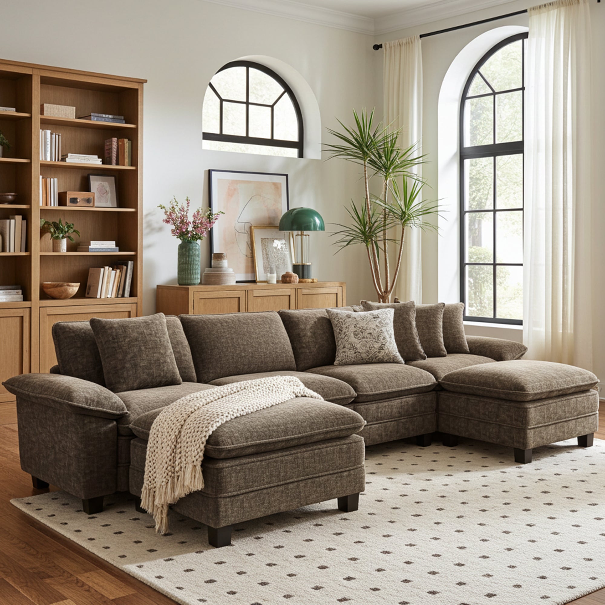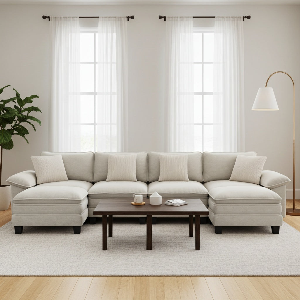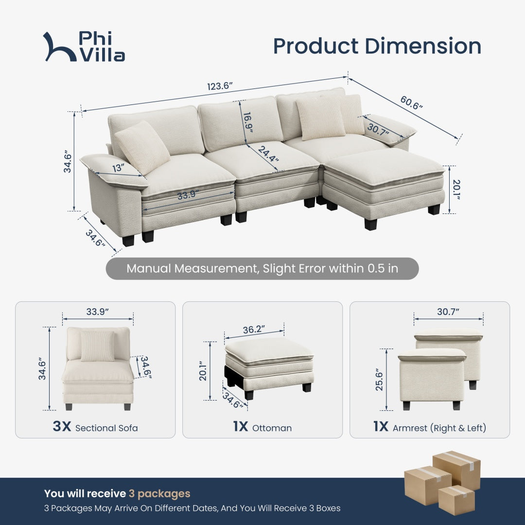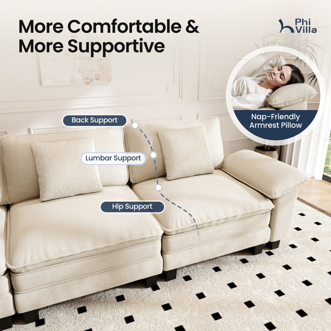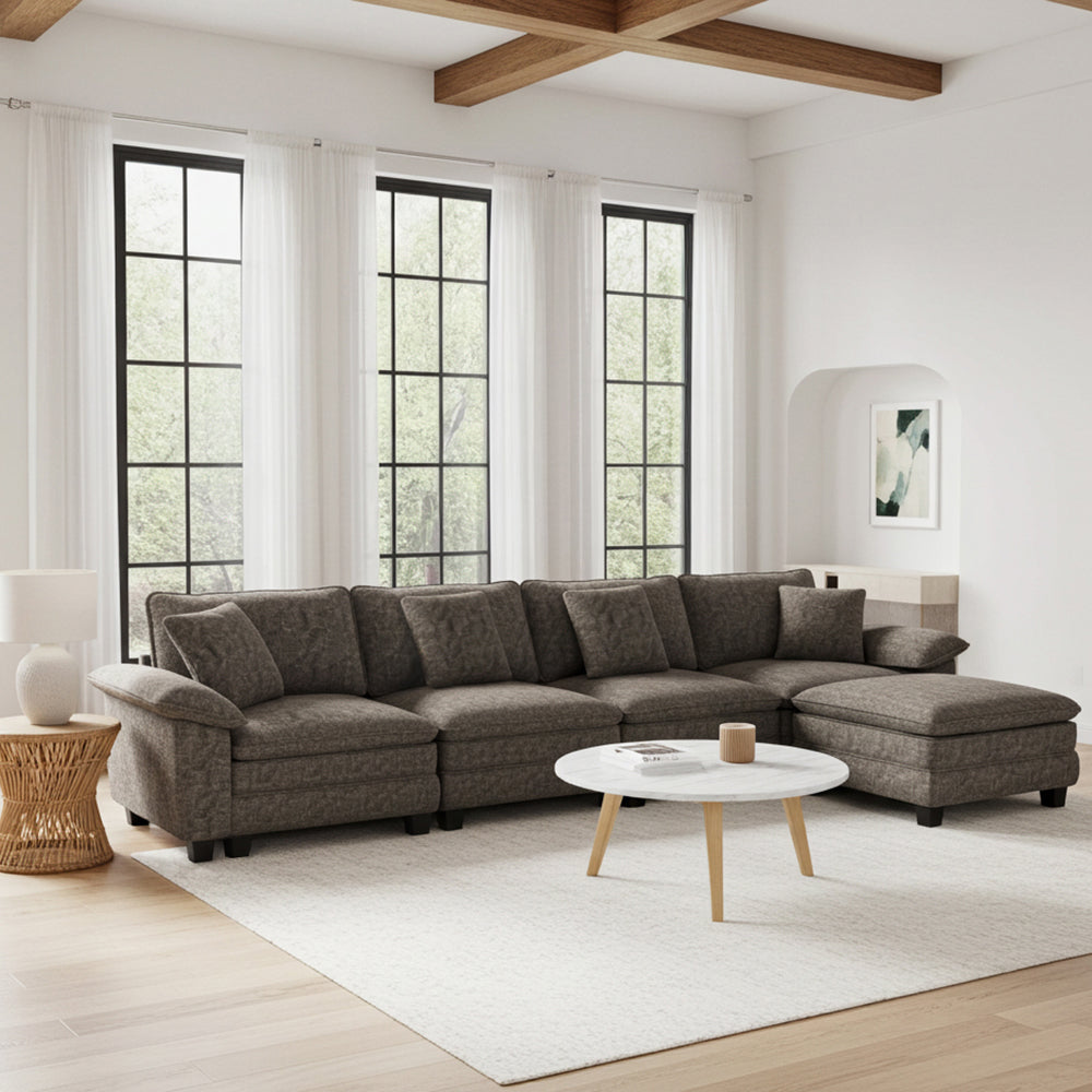 Briar Chenille Living Room Sofa Cloud-like Modular Sectional with Ottoman