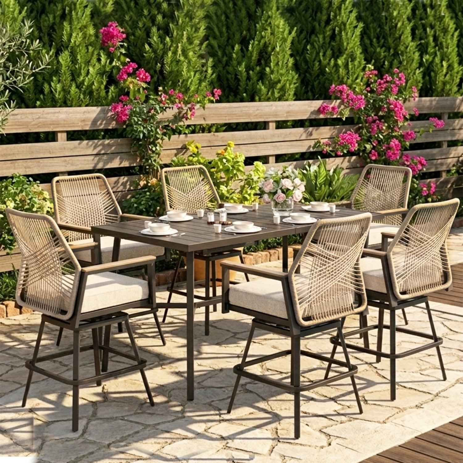 - Phi Villa Mirage 7-Pcs. Rope-art High Bar Stools