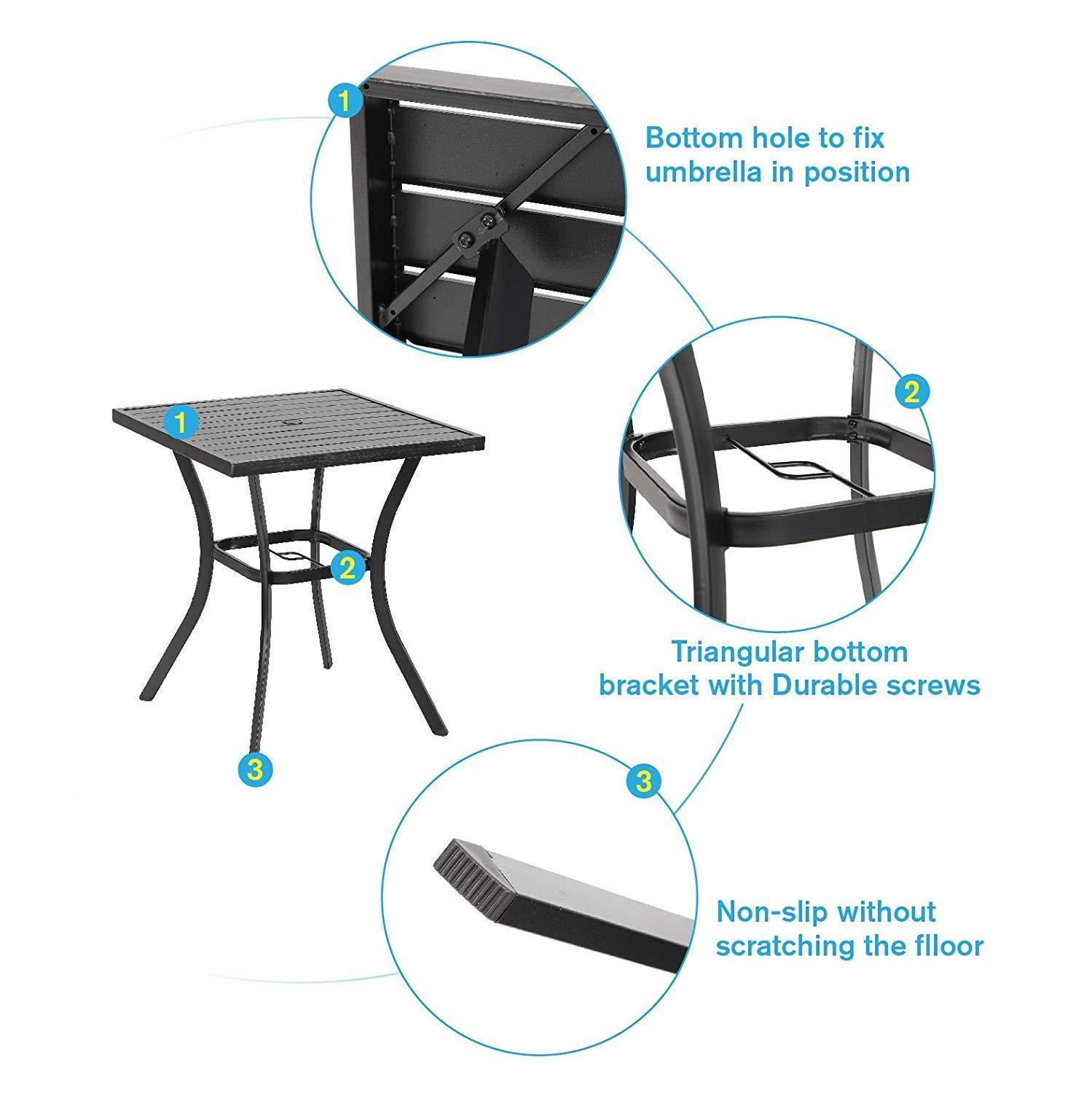 - Table: 31" L x 31" W x 36" H