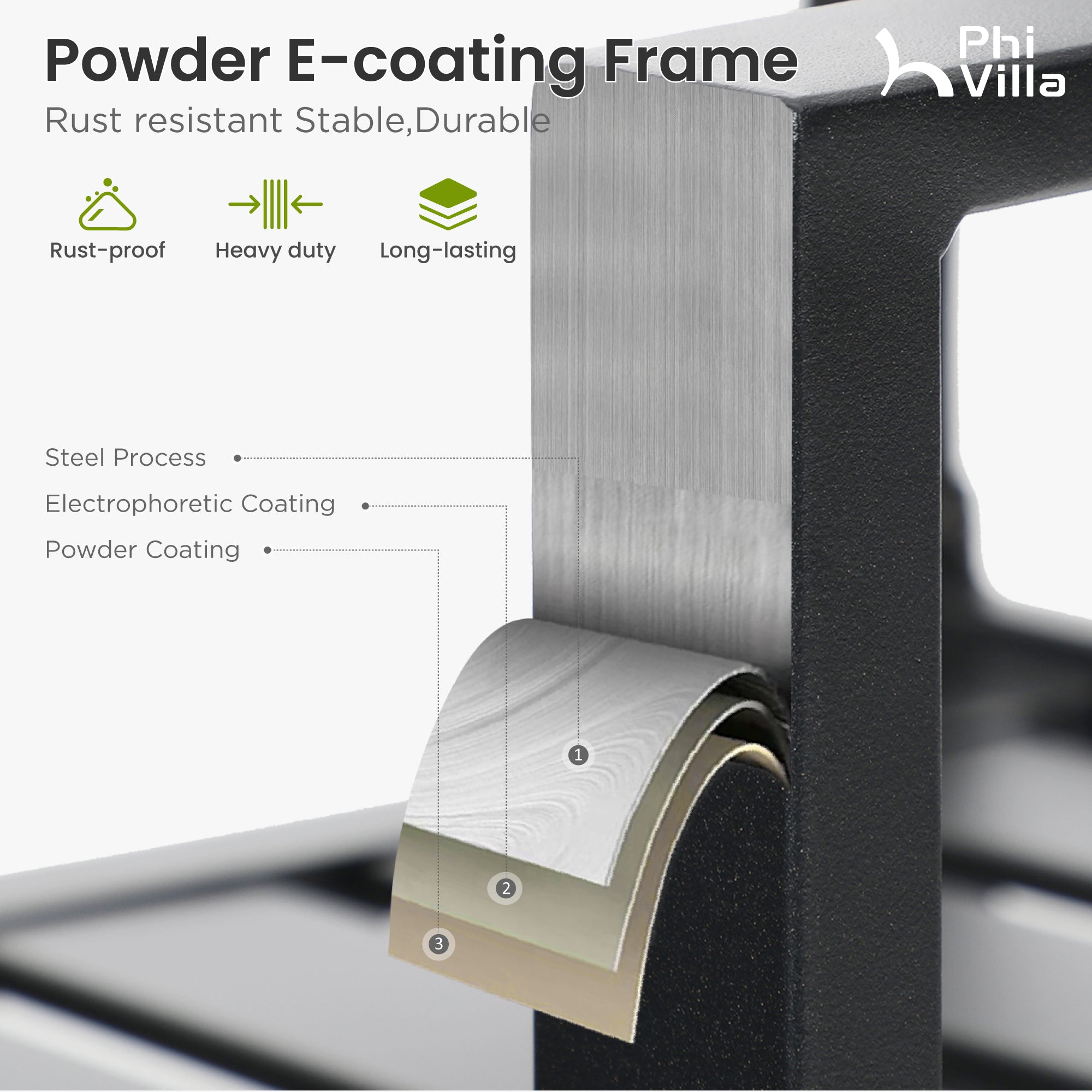 - Heavy-duty powder-coated steel frame