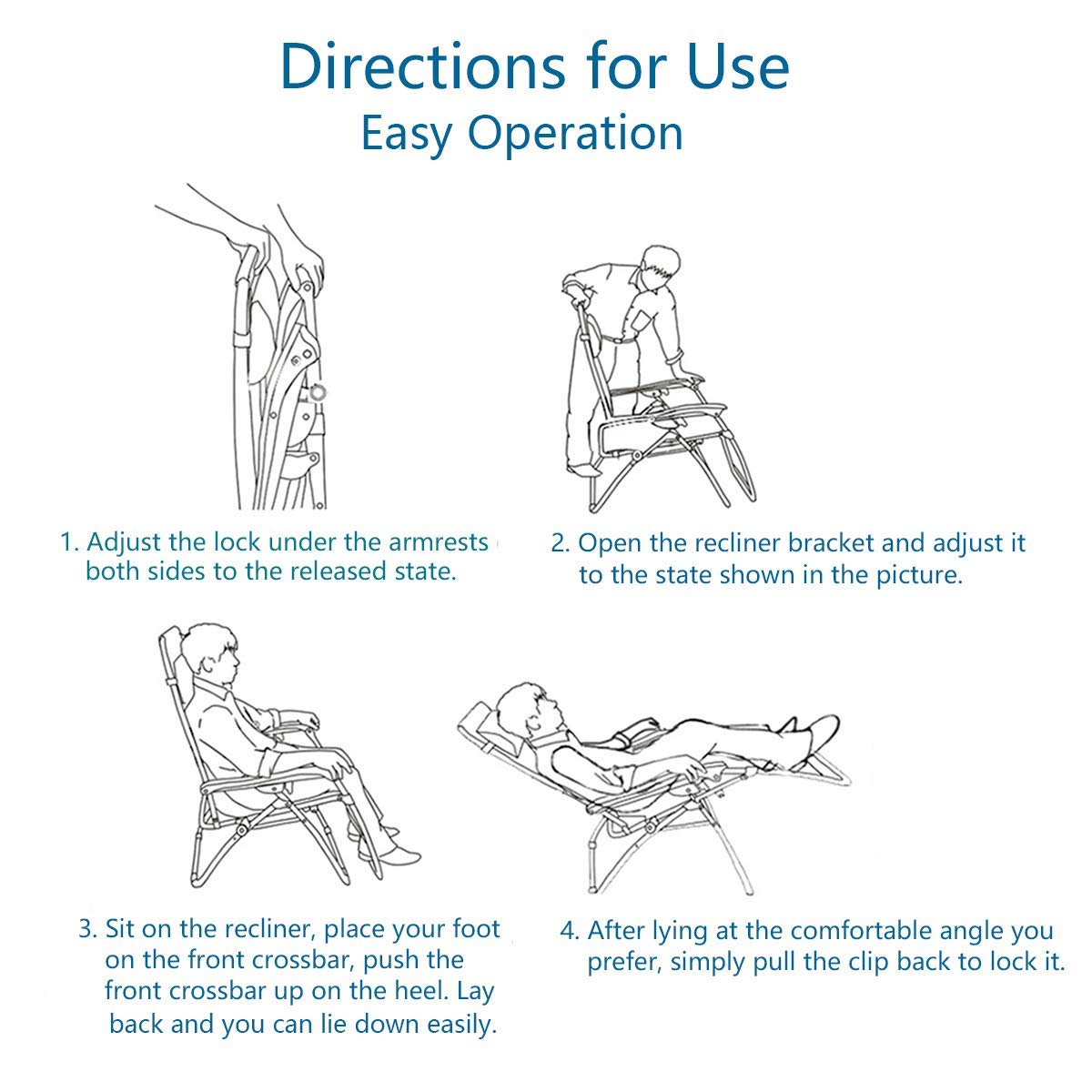 Sturdy and Durable: The fabric is weather-resistant. The chair with an anti-rust metal frame supports up to 350 lbs and you will feel stable and safe.