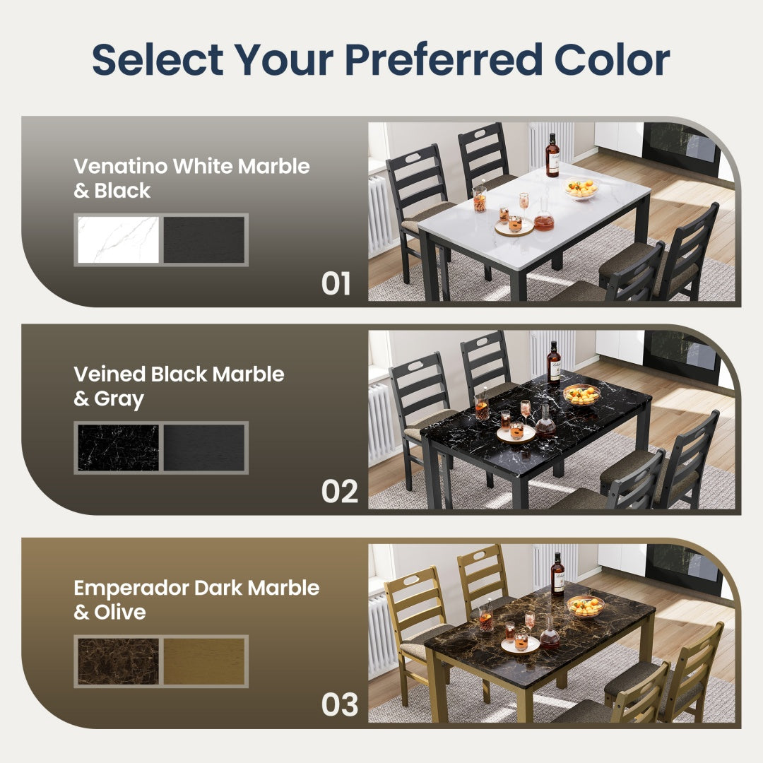 - Perfect for Compact Living: Thoughtfully designed for smaller spaces, this complete dining set (one table, four chairs) offers stylish functionality without compromising on footprint.
