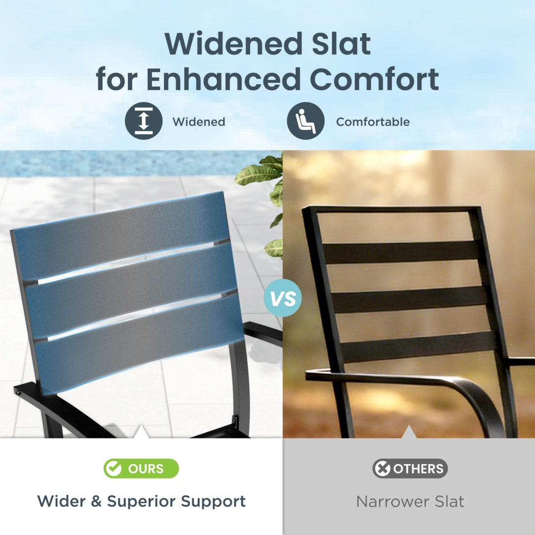 - Enhanced Comfort: The wider slats on the chair backs provide superior comfort and support, ensuring you can relax for extended periods without discomfort.